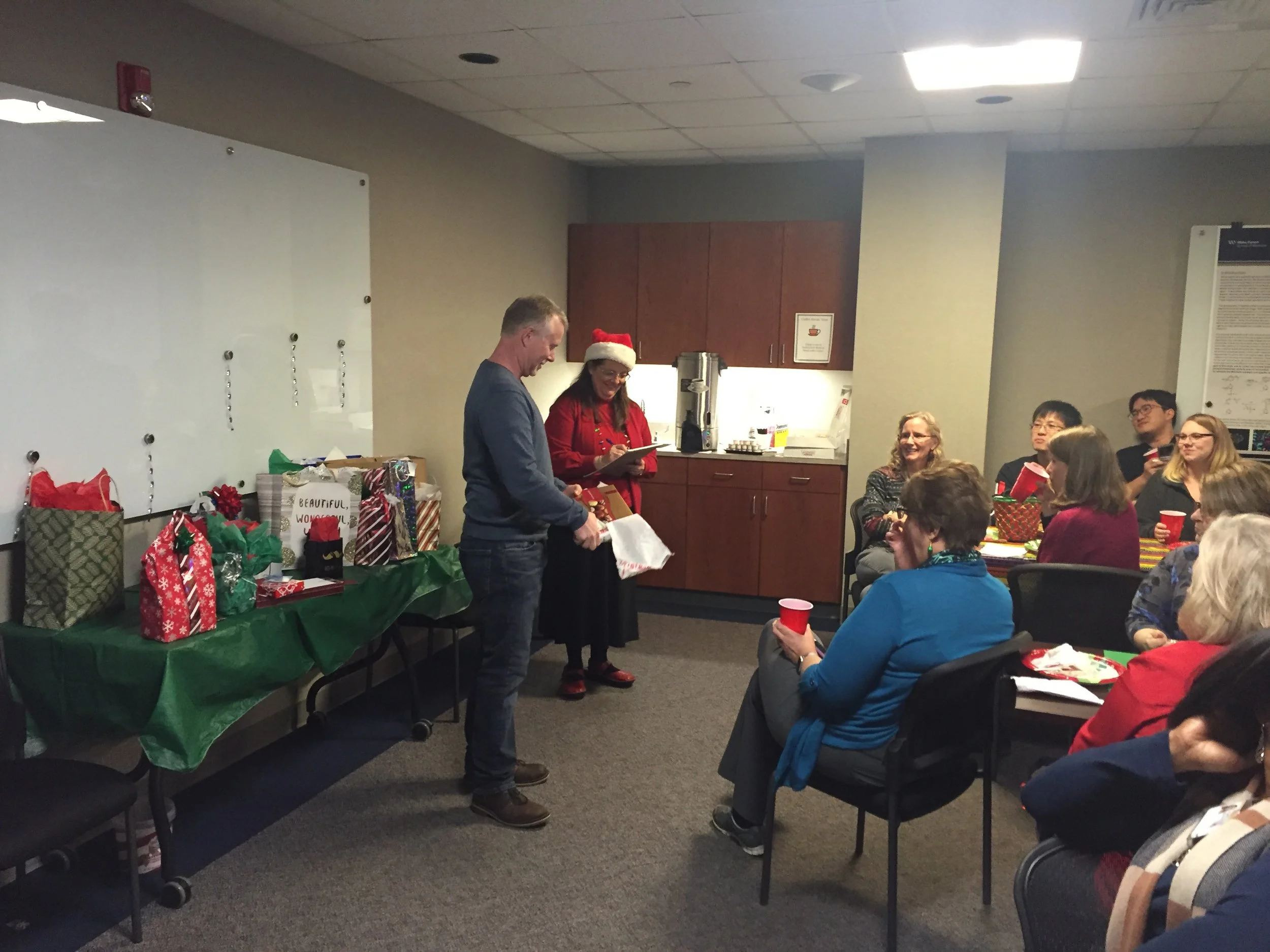 Everyone had a great time with wonderful food and drinks, from turkey and ham to a wide spread of foods with an international flair. The luncheon culminated in the “Dirty Santa” Gift Exchange (where one brings an anonymous present and does not only get one in exchange but can claim someone else’s gift, which made for a fun and lively gift “exchange”). Thank you to our administrative staff for the festive preparation and particularly to Linda, who professionally organized the gift exchange and kept things under control, particularly the run for the “spaghetti monster” apparently the most coveted present of this year’s gift exchange.